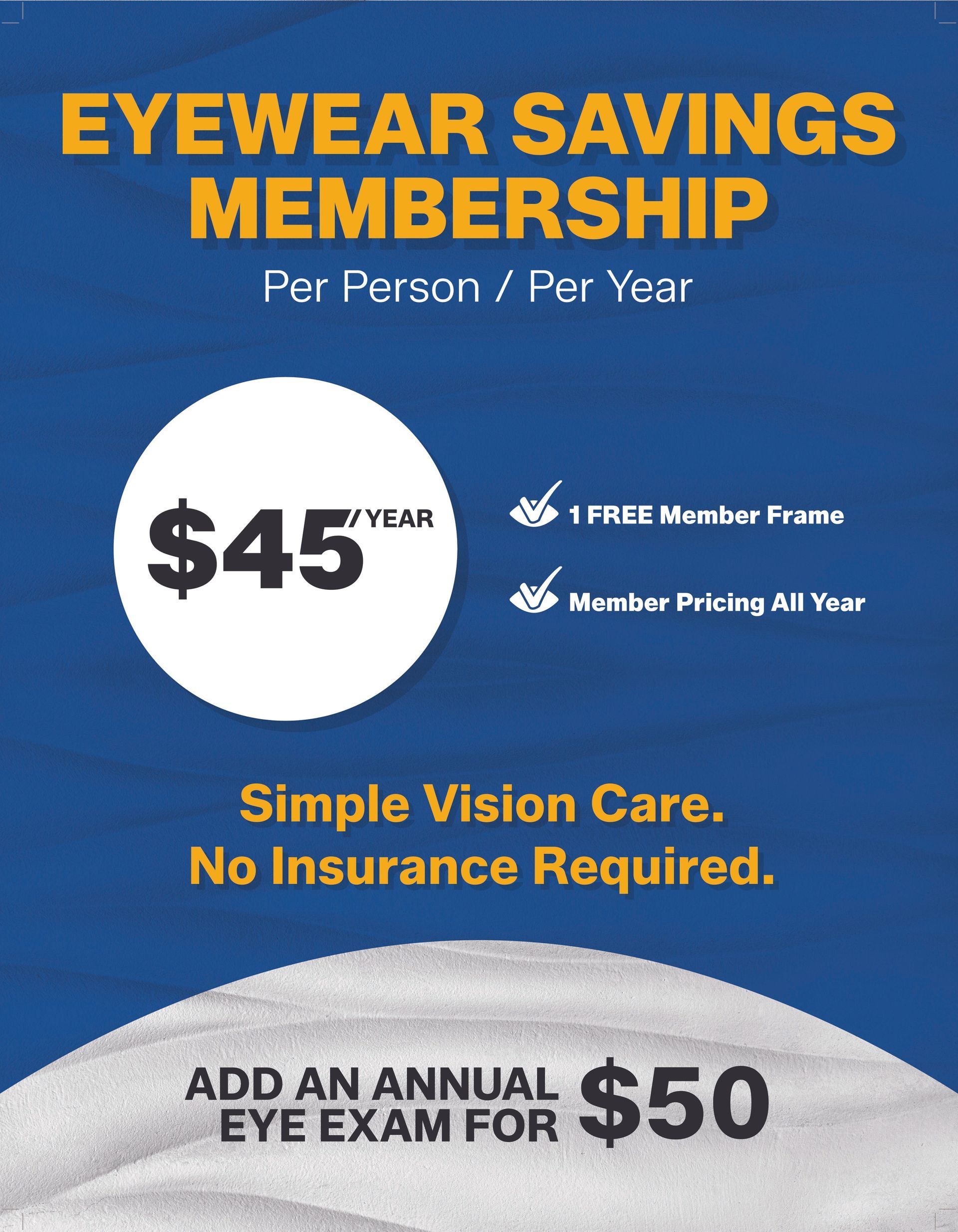 Our membership is a simpler option with clear pricing, year-round savings, and the freedom to take care of your vision when you need it, not just when your benefits reset.