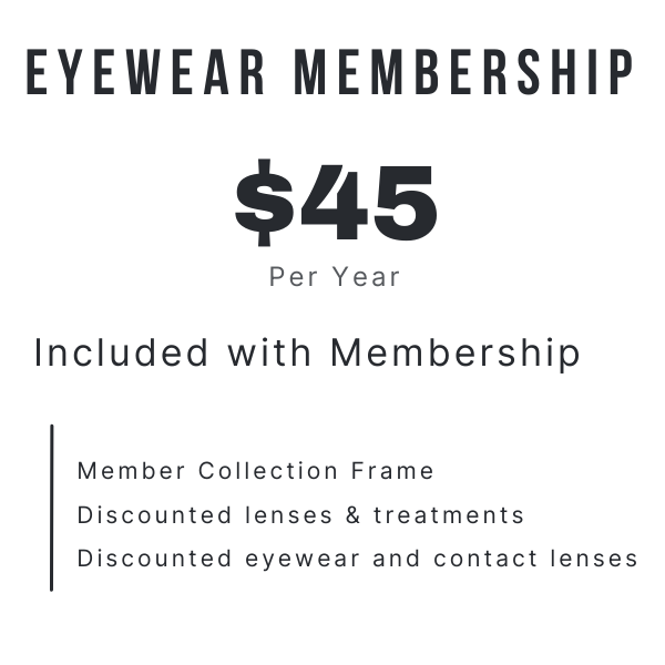 For $45 per year, the Eyewear Membership keeps eyewear pricing low all year . The benefit of the full membership without the exam.